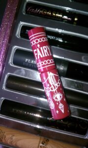 My first choice was the elaborately decorated Fairy Drops Scandal Queen Mascara. Now, anyone who knows me, knows I questioned what I was getting into with a title like Fairy Drops. Did an naive blonde from Louisiana pop out when I opened the tube or would I be greeted with a divalicious drag queen? Fairy drops… Alright, lets see if they work any magic.